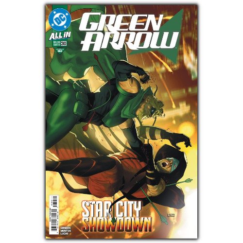 THE SHOWDOWN YOU’VE BEEN WAITING FOR! It’s all come down to this! Green Arrow faces off against the Crimson Archer in a high-stakes rooftop duel for the soul of Star City!
