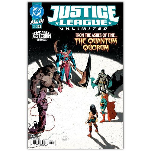 In the aftermath of the devastating events of We Are Yesterday, the Justice League is reeling from the Legion of Doom’s wrathful rampage! But no time to rest for the protectors of our planet, as the secrets unlocked during their time-crossed duel have brought our heroes face-to-face with a mysterious Quantum Quorum, who has reason to fear that all of creation might soon come to an end. It’s the next big step on the path of the All In saga in the epic epilogue to We Are Yesterday!