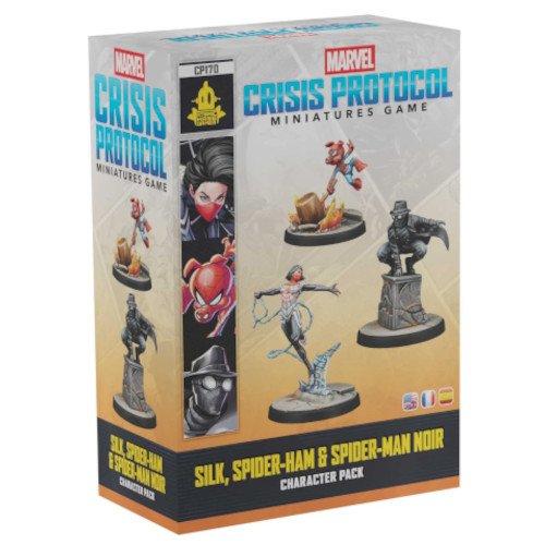This Character Pack adds 3 new Spider-Verse Affiliation characters to Marvel: Crisis Protocol. Silk uses her Spider-powers and heightened agility to strike fast and escape quickly. She is an excellent hit-and-run fighter. Spider-Ham uses his cartoon-like powers to take down foes, bringing hilarity and justice to the battlefield. Stalking the criminal underworld of 1930s New York, Spider-Man Noir packs a pistol that he uses for ranged attacks but has the durability of a street brawler. This pack is a must-have for Spider-Verse fans and players building out a Spider-Verse roster.