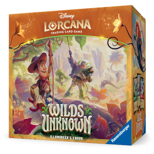 The ultimate treasure for both collectors and players, the Illumineer’s Trove contains a full-art storage box with seven card dividers to keep your Disney Lorcana TCG cards safe and organized by ink.