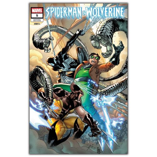 DREADSHADOW! WOLVERINE and SPIDER-MAN have been put through the ringer — and are at the mercy of DREADSHADOW and the SHADOW COVEN! The mystery deepens as the threat increases… but what is this mysterious force’s endgame? Featuring the first cover appearance of this all-new villain!