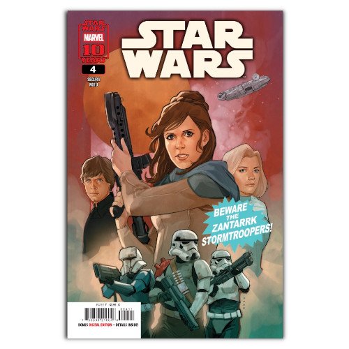 LEIA ORGANA — IN THE CLUTCHES OF THE ZANTARRK STORMTROOPERS! An assassin unmasked — and it’s not who you expect! The Millennium Falcon — cornered! And a message from the CLONE WARS ERA sends shock waves in the present!