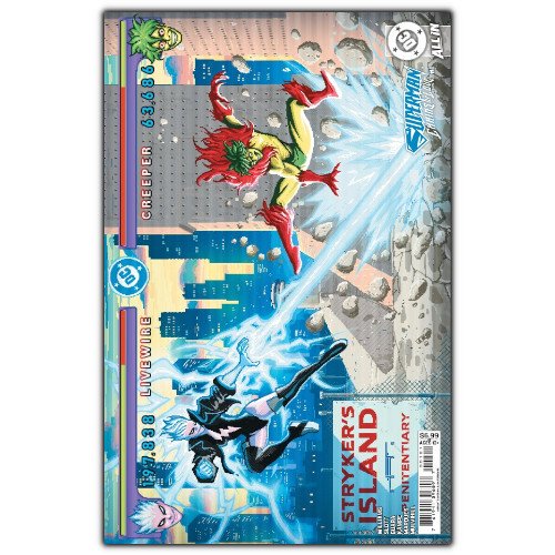 Love is in the air — also death — in Superman: Chains of Love Special ! Step aside Daily Planet — a new news force is taking the city of Metropolis by storm! When the former felon Livewire is released from prison, an unholy alliance and (frankly, wholesome) romance with the Creeper is forged in the fires of a super-villain battle! But with two of Metropolis’s most notorious shock-jock media personalities getting together comes the debut of a new outlet to rival even that of the Daily Planet. Witness the rise of the Wiretap and some shocking surprises in the Superman: Chains of Love Special!