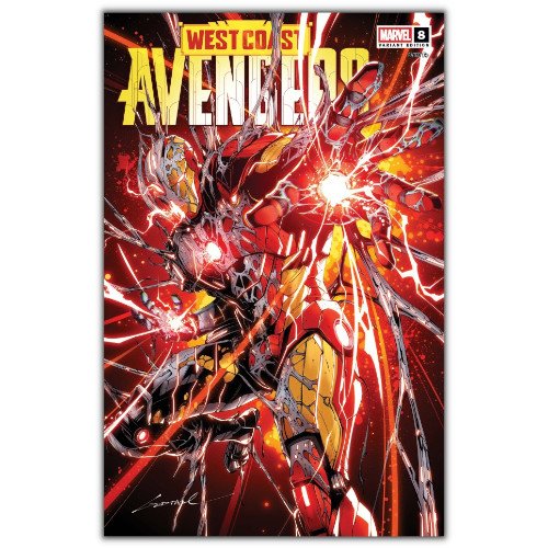The competition between the Ultrons kicks into high gear as the West Coast Avengers finally take on the Church of Ultron! And as they battle Ultron’s loyal followers, another threat looms — what’s Flag-Smasher been up to in prison?
